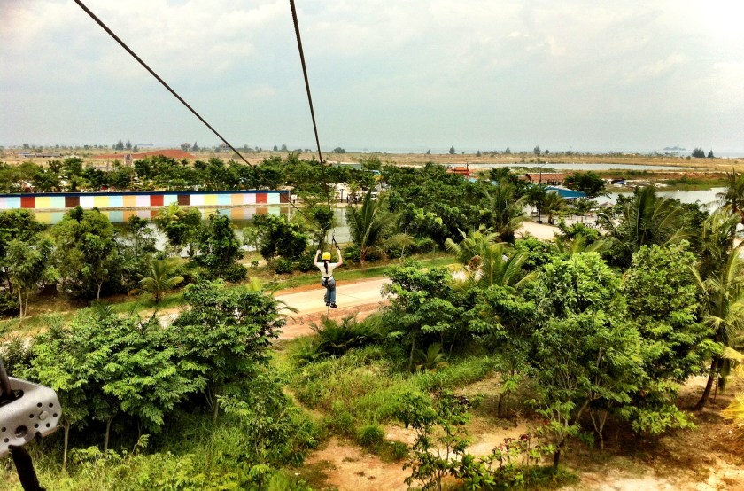 My legs felt like jelly and I pretty much freaked out very badly. The operator kept asking me to position myself in a seating position so that he could push me off the post (you need to get into a seating position so that the safety vest around your hips and groin wouldn’t suddenly tighten because of the fall and injure your crown jewels). At that point, I kinda lost it. I freaked out and started yelling: “TAK BOLEH!!! TAK BOLEH!!! SAYA TAK BOLEH!!!!!” (Translation: Cannot! Cannot! I cannot do this!!!)